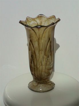 deco style vase in a 'Mossy Green' Cloud Glass. The maker is unknown. but