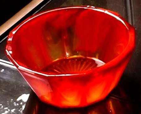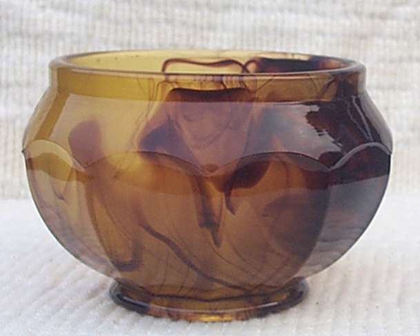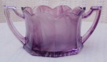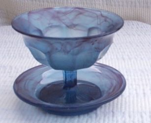 Glass. A finger bowl was also made in Amber, Blue and Purple Cloud. |