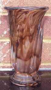 Description: This vase has a stepped base and vertical ribs which twist anti-clockwise as they approach the rim
