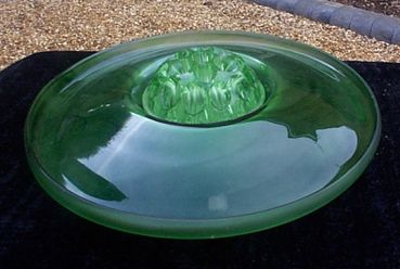 bowls. The main production did not start until later that year. Green Cloud Glass consists of green trails on a clear flint base.