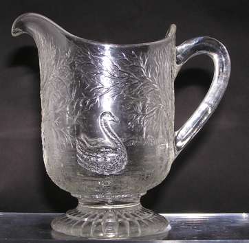 jug decorated with the picture of a swan and foliage. Lion trade mark on