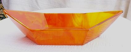Glass. A finger bowl was also made in Amber, Blue and Purple Cloud. |